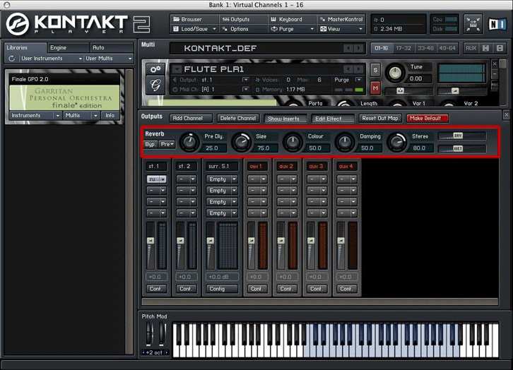 Remember that this Kontakt Player 2 reverb should not be used in combination with the Ambience Reverb. For more information, see Kontakt Player 2.