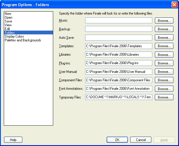 From the Edit menu, choose Program Options and select Folders.
