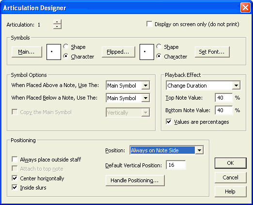 each symbol, Finale lets you adjust the position of each character’s handle,