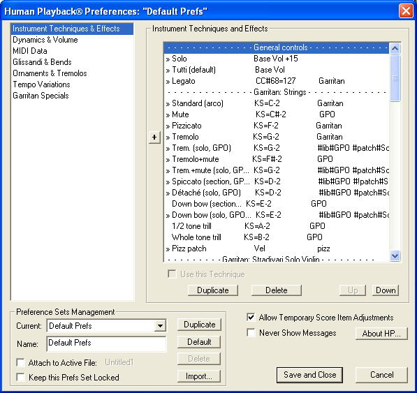 From the Plug-ins menu, choose Playback, and then Apply Human Playback. Then click HP Preferences. When Human Playback is applied to a region of your document, the settings in this dialog box apply. These are program-wide settings, and not specific to the document you are editing. Settings in this dialog box do not apply to standard Human Playback defined in the Playback Settings dialog box.