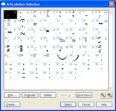 example). You can select, edit, delete, or create articulations in this