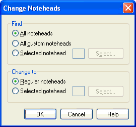 Use this dialog box to change the noteheads in the selected region to regular noteheads or to the notehead you specify.