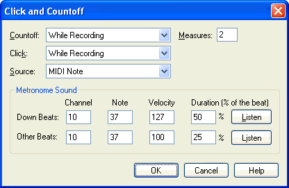 define the countoff click settings and the metronome click used for recording, and for playback using Playback Controls.