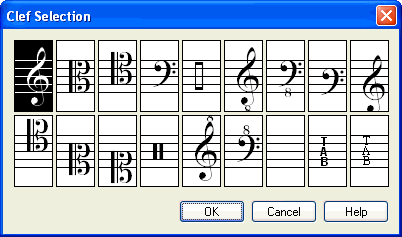 The Clef Selection dialog box appears any time you click a Select button for a clef, which appears in a number of Finale dialog boxes.