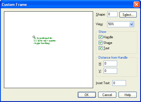The Custom Frame dialog box contains an option where you specify the amount to inset a text block from the custom shape.