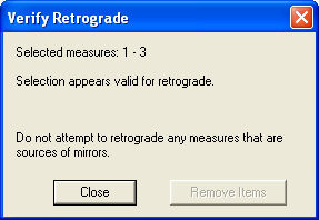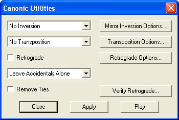 mirrored measures in the selected region. Click Close to return to the Canonic Utilities