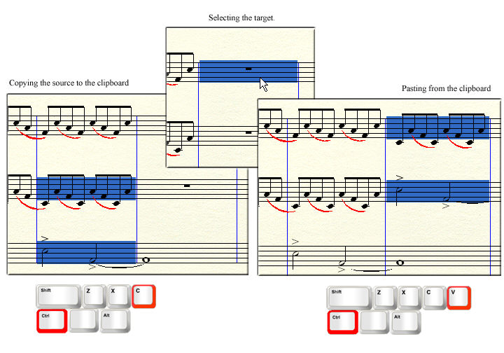 (or cut) and paste music. When you paste, existing music is overwritten.