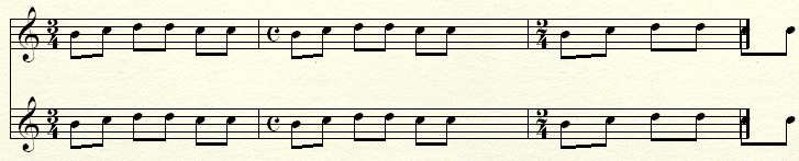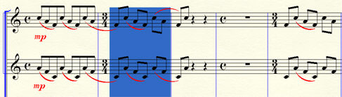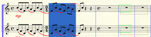In the example below, the first measure has been copied to measure 2 and measure 3.with Time Signature unchecked in the Edit Filter dialog box.