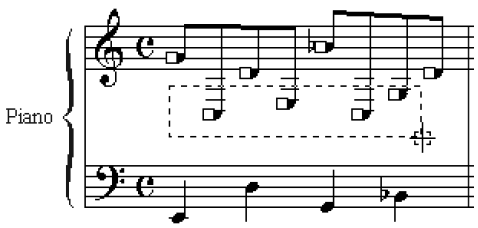 If you have a relatively simple cross-staff notation, you’re done. If you need the beam in the middle, continue with the instructions below.