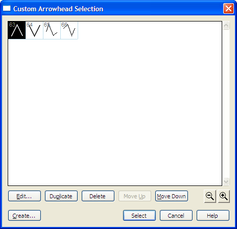 The Custom Arrowhead Selection dialog box allows you to select from a number of shapes you’ve created to use for your arrowhead.