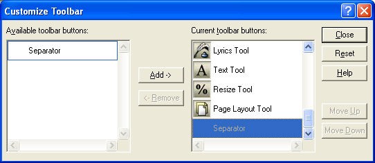 Use the Customize Toolbar dialog box to add, remove, or rearrange the tools in your palettes.