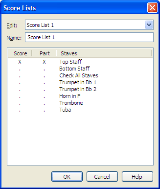 over creating and editing Score Lists and Staff Lists, which are both used to identify the staves a marking is to appear. Score Lists and Staff Lists are only available for markings that apply to the full score, such as tempo and rehearsal mark expressions and repeat indications.