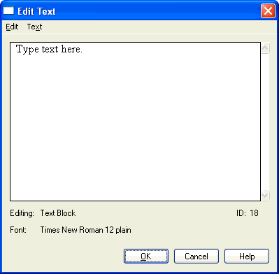 To edit a single text block: Click the Text Tool. Click a text block handle. Choose Edit Text from the Text menu.