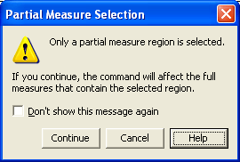 This alert appears when you attempt to apply a Staff Style defined with elements such as Independent Key or Time Signature to part of a measure. Click OK to apply the Staff Style to the entire measure.