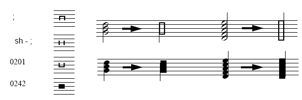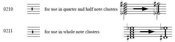 These noteheads allow for a quick and consistent way to input tone-clusters. After inputting notes, use the Special Tools Tool to change the noteheads. Engraver Font Set and Engraver Font Extras Only.