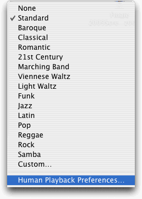 You access the Human Playback Preferences from the MIDI/Audio > Human Playback submenu.