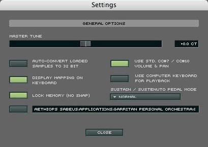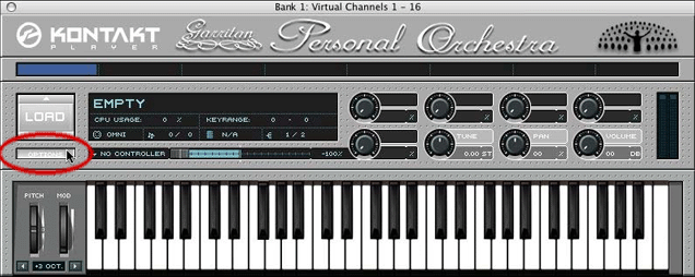 For Garritan libraries that use Kontakt Player 1 (as of this writing, Full GPO and JABB), you may need to adjust this setting yourself. To do this, from the MIDI/Audio menu, choose Instrument Setup > VST Instruments, then click any of the Edit buttons in the dialog box to bring up an instance of the Kontakt Player. Then click the Options button in the Kontakt Player: