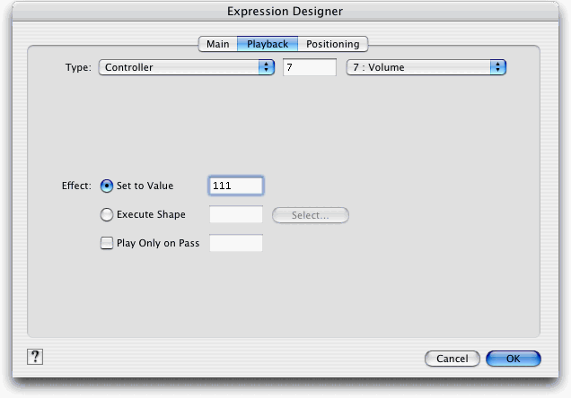 This is like “fixing it in the mix” during a mixing session, by adjusting the instrument’s volume slider on the mixing board. Assigning an expression defined to modify MIDI controller #7 is a bit like creating an automated slider move on a modern, motorized mixing board — in other words, this kind of expression affects volume only, not timbre.