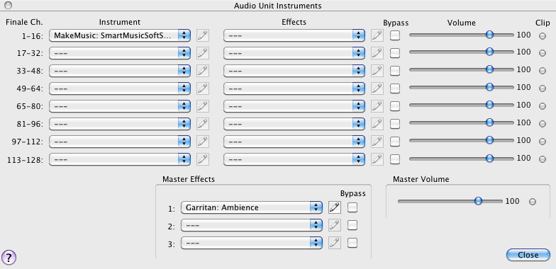 For information on customizing these reverb settings, consult the entry on “Garritan Ambience” in the Finale User Manual.