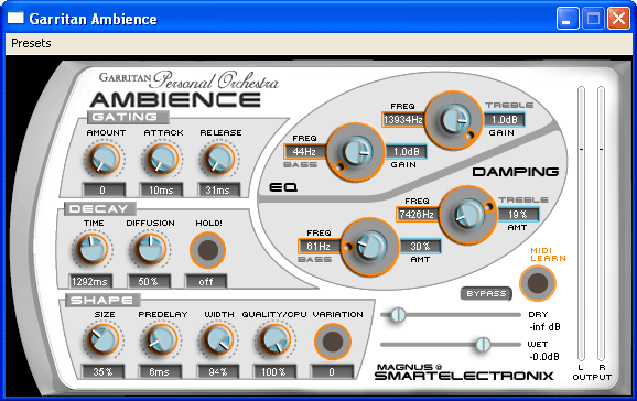 The Windows version of Ambience Reverb has a different user interface, but the controls are the same: