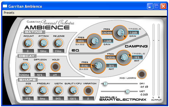 Personal Orchestra. These presets include concert halls, a cathedral,