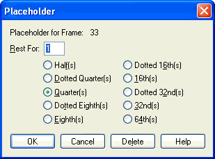 For example, if you want to create a pickup in 4/4 consisting of three eighth notes, you need to create a "rest" the equivalent of five eighth notes to precede them. Enter 5 in the text box and select Eighth(s) from the list of durations (see below).