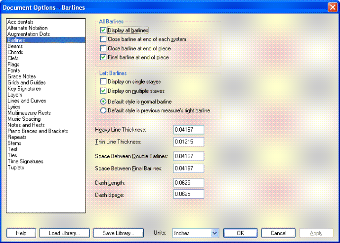 barlines. The default value is .0625 inches (4.5 points). Enter a larger
