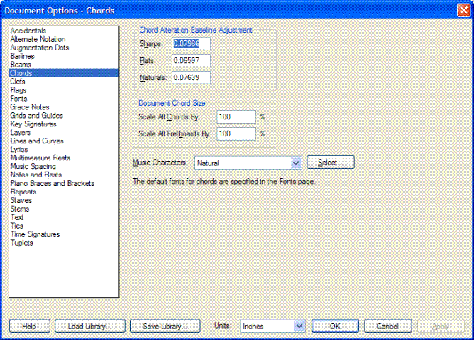 Here, you can specify the font of chord elements, adjust their baselines and change their font characters.