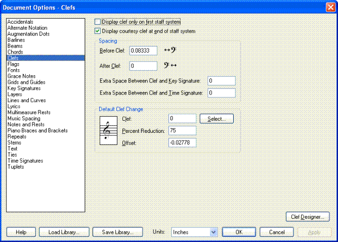 Clef Change: Clef; Select • Percent Reduction • Offset. This text