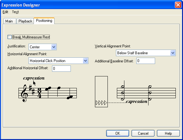 These options control the default positioning of the expression relative to the note, barline, or music.