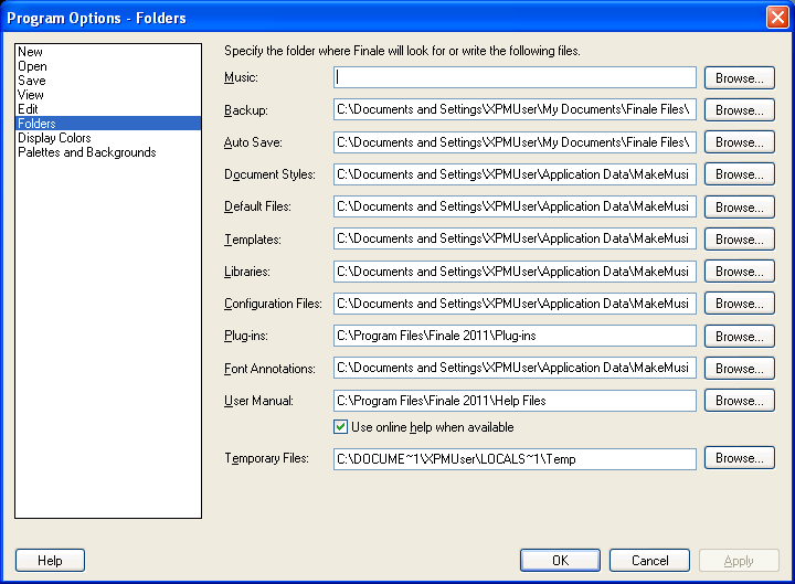 Finale 2011 menu/Program Options