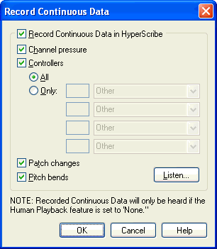 Bends. Check this box to record pitch bends ( data) during HyperScribe