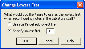 Use this dialog box to specify the lowest fret for a region of tablature in a TAB staff.