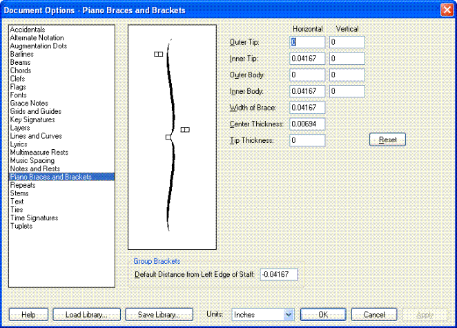 Using these options, you can adjust the curvature, thickness, and overall shape of the curly piano braces used in your document.