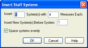 Use this dialog box to insert a system or systems into your music while keeping the rest of your systems intact or reflowing measures across systems and pages.