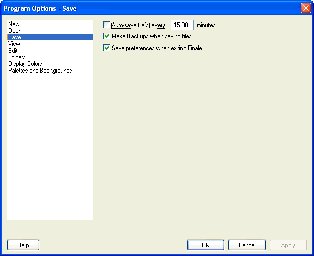 menu), Finale’s Auto Save command is a good safety net. When this feature