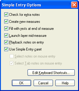 Simple Entry Options dialog box