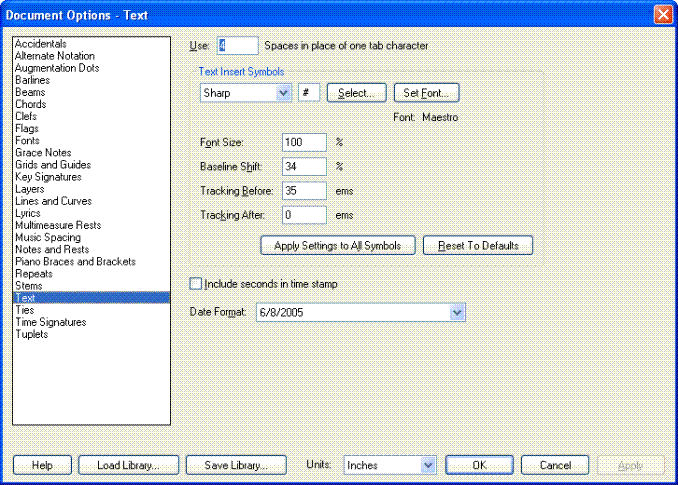 including their default Maestro characters, for each symbol. Finale updates