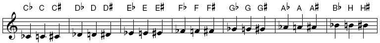 This style is the same as Standard, with a few exceptions; instead of B flat, B and B#, Finale displays B flat, H, and H#.