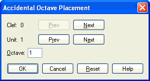 In some of the key signatures you create—and for some nonstandard clefs you design—you may want to adjust the octave placement of accidentals on the staff. In this dialog box, you can adjust the octave in which each accidental appears in relation to each clef.