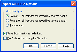 not be displayed when you save a MIDI file, only when Export MIDI File