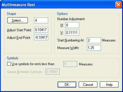 Multimeasure Rest dialog box