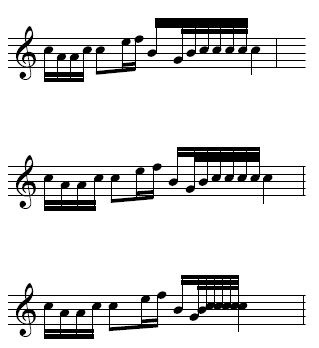 This example is spaced with Beat Spacing. Each beat is spaced non-linearly first, then spaced within the beat linearly. |