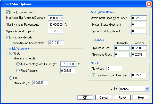 Smart Slur Options dialog box