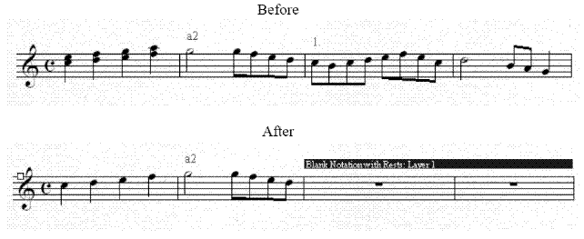 Occasionally, more than one voice appears in the same score staff (e.g. “Flutes 1 & 2” or a divisi section). If this is the case, you may want to print separate parts, for example, one for “Flute 1” and another for “Flute 2.” Finale can help you hide notes to isolate a single voice in preparation for printing the part.