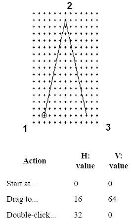 H: and V: numbers as you move the cursor, and place your mouse clicks