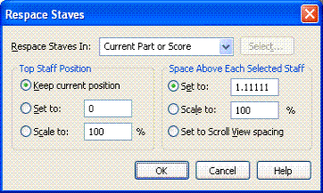 Respace Staves dialog box