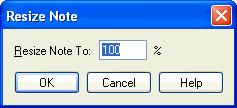 The Resize Note dialog box lets you specify how much you want to reduce or enlarge a note, chord, or beamed group of notes.