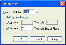 This dialog box lets you specify the percentage of enlargement or reduction you want applied to a staff.