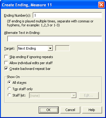 staff, Finale will place an identical ending-repeat bracket in each staff;